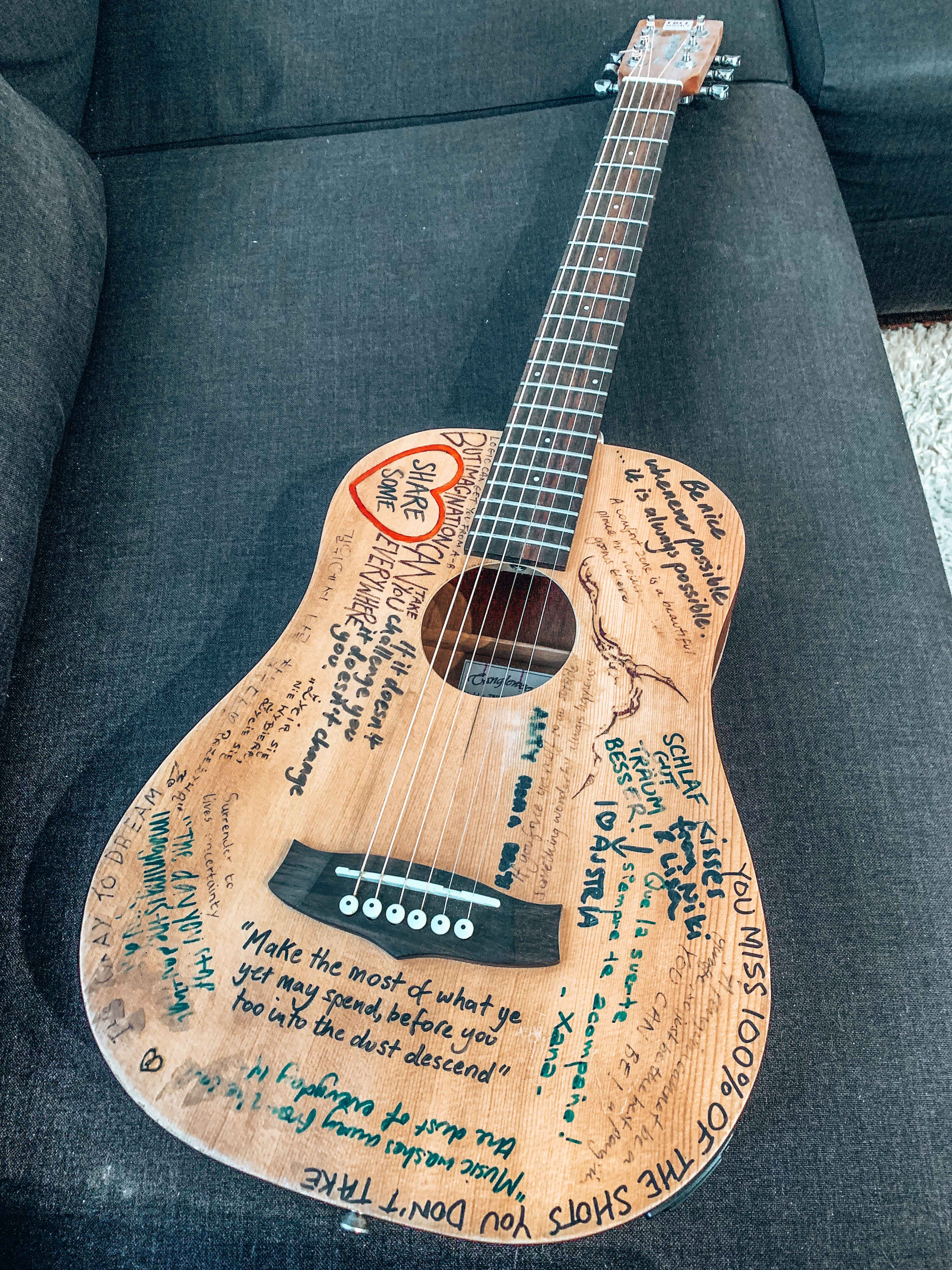 I normally travel light; just my backpack with a few clothes and my guitar, sometimes if I’m staying abroad for longer I will pay for the extra baggage allowance and take a suitcase. I was at the check-in getting my boarding pass (on a flight from Munich to Greece) and the attendant asked me about my guitar. “Is that for checked luggage?“